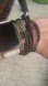 Rich brown braided leather and silver crescents. Triple strand. Original box. Excellent condition.