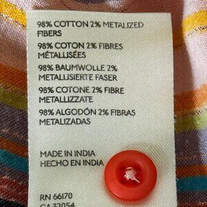 Multi-colored stripes (peach, orange, lilac, green, yellow, navy blue, metallic gold)
