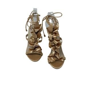 LIliana beige satin ruffled tie up heel sandals size 5.5