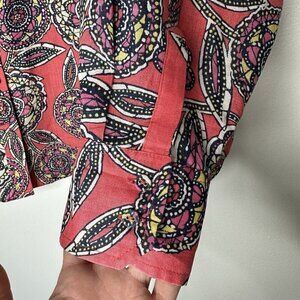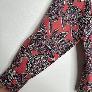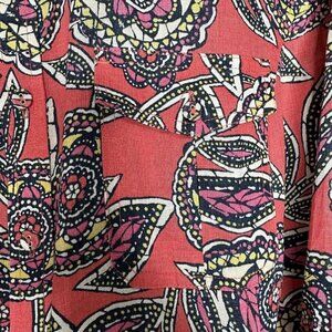 LInen Charter Club Shirt Button up Floral Long sleeve roll tab 18W Coral