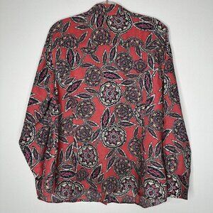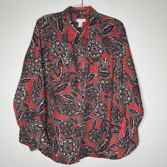 LInen Charter Club Shirt Button up Floral Long sleeve roll tab 18W Coral