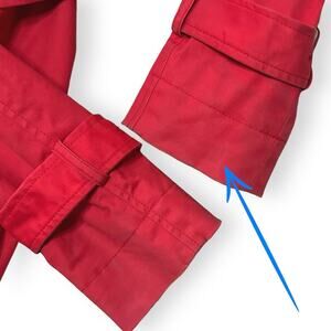 * Minor teardrop-shape stain by the cuff where blue arrow is pointing at, although not noticeable since its facing inward. No other flaws, still in pristine condition overall! *
