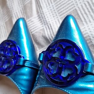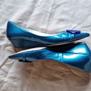 L.K. BENNETT electric blue pointed toe kitten heel flats