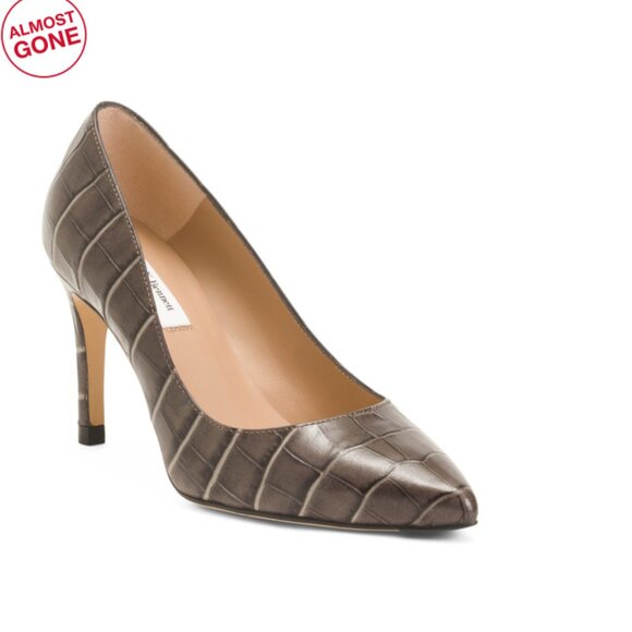 croc embossed, leather lining, stiletto heel, size chart conversion may vary slightly by country
