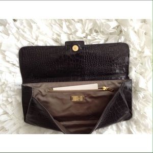 L.K. Bennet Clarice Clutch. Genuine soft black croc embossed butter leather. Gold snap closure and hardware, gold nameplate on backside, Inside zip pocket. Measures 14x6 inches. I purchased this bag in the UK! Like New, Excellent condition! Beautiful detail! ❤️