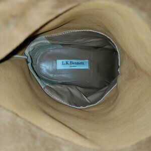 Elevate your wardrobe with these chic L.K. Bennett suede wedge boots. The caramel hue complements versatile styling, while the wedge heel adds height and comfort.
