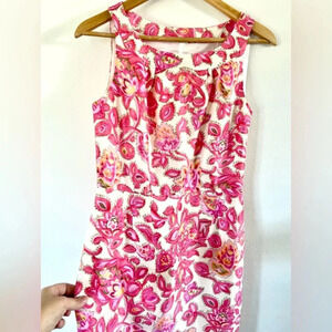 L.K. Bennet Painted Style Pink Floral Paisley Sleeveless Shirt Dress Size 4