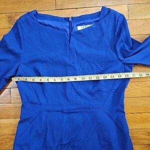 L.K. Bennett A Line Blue Dress Size 5 Midi 3/4 Sleeve