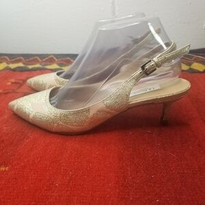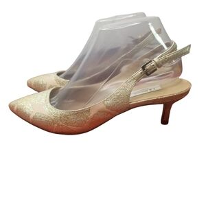 L.K. Bennett Ava metallic floral slingback pointed toe heels