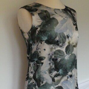 Brand new with original tags in place an LK Bennett Silk bouse top. Sleeveless with a back zipper. The back of the top hangs a bit lower there than the front. This top is from the Black Ribbon collection. 100% silk fabric, the pattern name is Blossom Garden Print. USA size 4. This was at one time a sample blouse, and was purchased in NYC at LK Bennett. Please see all photos. Dry clean only. Stunning colors with different shades of green and blue on an off-white background. Unique tamperproof tag # C024806. Original retail price on this top was: $745.00.