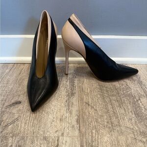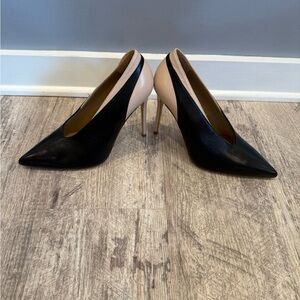 Chic LK Bennett heels in black and cream. Sleek design for versatile elegance.