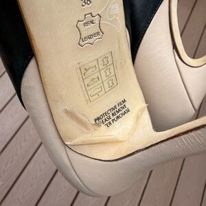 NB, the heels have protective plastic on the sole for protection. Remove prior to wearing.