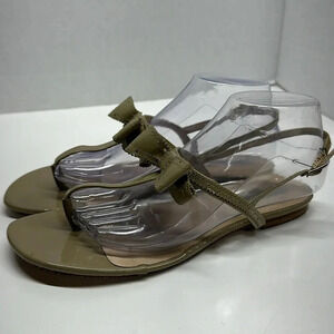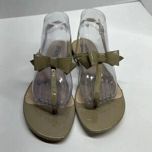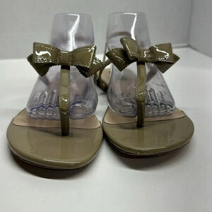 LK Bennett Bondi Patent Leather Bow Sandals Thong Flip Flops Ankle Strap Tan 40