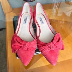 LK Bennett Bow Courts Flats D’Orsay size 38.5 women’s 8.5 pink coral suede
