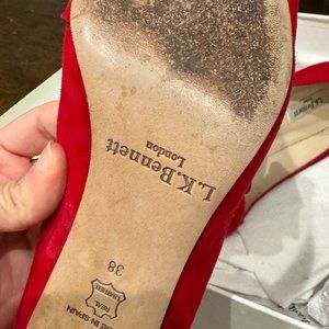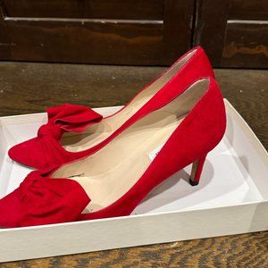 Dress up for Christmas or any black dress occasion with these beautiful feminine pair from L.K. Bennett. Featuring a slip-on design with pointed toes, a knotted bow at the front, and a sleek stiletto 3" heel. Due to foot surgery, I need to let go of these, but you will surely get many compliments for wearing them. It comes with original box and package.