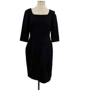 L.K. Bennett Clarie Dress Sheath Tailored Square Neck Black Size US 8