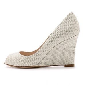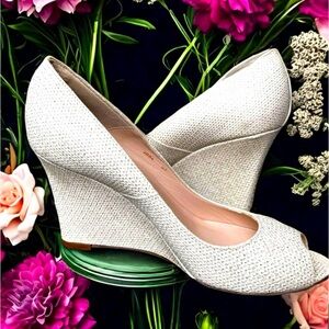 L.K. Bennett Erica Soft Gold high wedge, glitter knitted print size 37