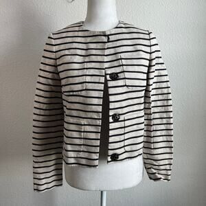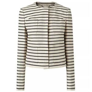 LK Bennett Gia Jacket Womens 2 Cream Stripe Boxy Linen Blend Button Front Blazer