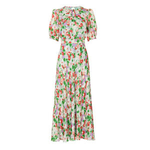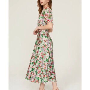L.K. Bennett Green Floral Silk Midi Dress SIZE 12 Satin Romantic Designer $825