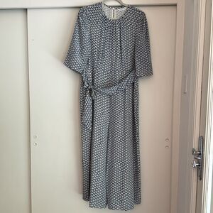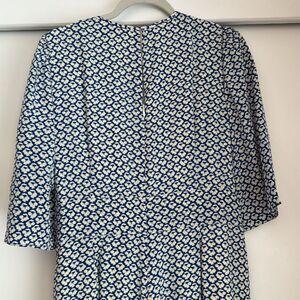 LK Bennett Joni Block Print 100% Silk Wide Leg Jumpsuit Blue White Casual Sz 12