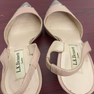 L.K. Bennett Keira Pumps Nude Blush Leather Slingback Kitten Heels Size 36.5