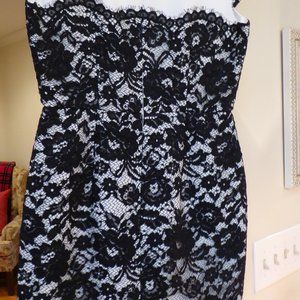 This is for a brand new, never worn LK Bennett, Lavinie white and black dress. White underpart with a black floral lace overlay. Dress is stunning and perfect for any formal event.