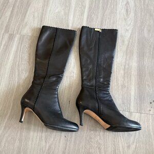 LK Bennett Leather Long Black Mini Heel Boot Size 36