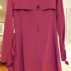 Condition: Stunning Designer Trench Coat that was worn one time, item is clean with no damage, this was a sample sale coat that is dated 2012. Deep Raspberry pink in color fully lined, there are some faint streaks on the fabric, purchased this way, does not affect usage or wear. See photos, smoke and pet free environment.