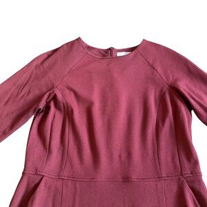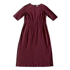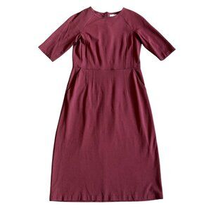 LK Bennett Liya Dress Cabernet Red Sheath Fitted 3/4 Sleeves Size 4 Women's