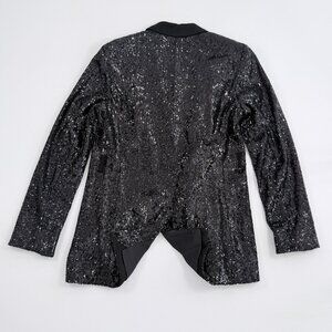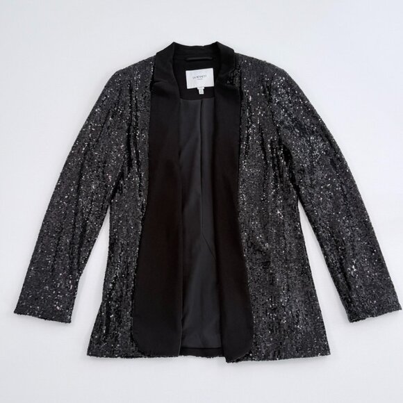 LK Bennett London Black Sequin Open Front Jacket with Satin Collar