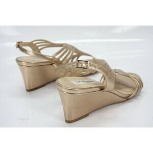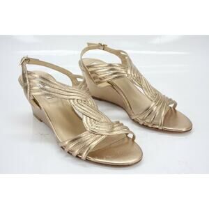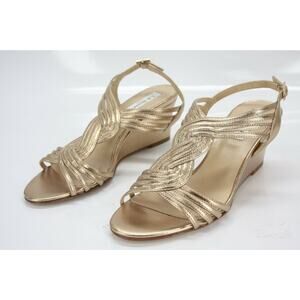 L.K. BENNETT METALLIC GOLD LEATHER DUNES CAGED STRAPPY WEDGE SANDALS SIZE 36 NEW