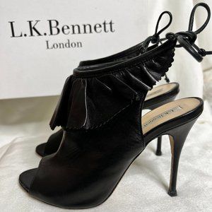 L.K. Bennett Riley Black Peep Toe with Ruffle, Size 42