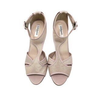 LK Bennett Size 39.5 Blush Pink T-strap Candy Stripe Heels Sandals