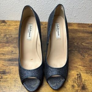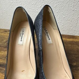 LK Bennett Sledge Black Glitter Leather Platform Heels Womens 8 (38)