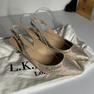 LK Bennett Women's Ava Mule Slingback Heels Pink Gold NWOT Size EU 40 US 9