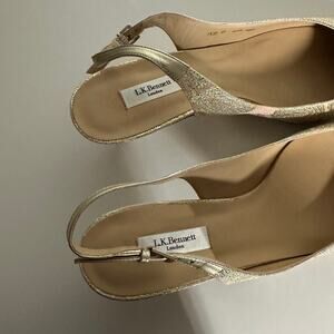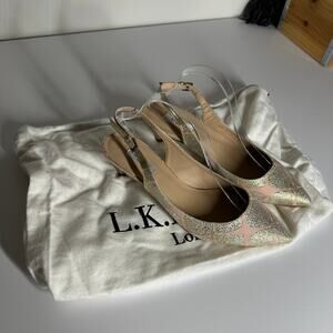 Item: LK Bennett Ava Mule Slingback Heels Pink Gold Patterned; matching purse also available in store