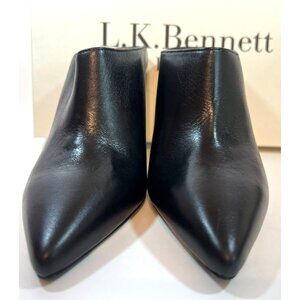 These L.K. Bennett mules blend sophistication with comfort for any formal occasion. With a sleek, pointed toe and elegant black leather, they offer a refined finish.