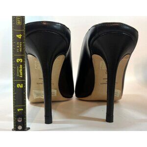 L.K. Bennett Womens Black Leather Pointed Toe Mules Size 37 Stilletto Heel
