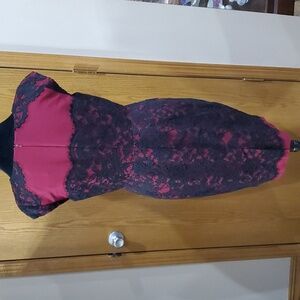 authentic l.k Bennett like new condition black lace over burgandt red midi dress size 12 no issues showstopper dress