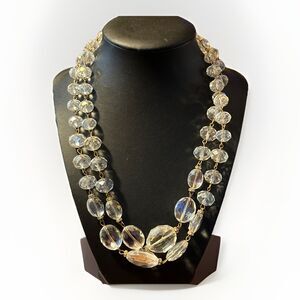 LK By Leetal Kalmanson Long Faceted Clear Glass Bead Chain Necklace 40”-43”