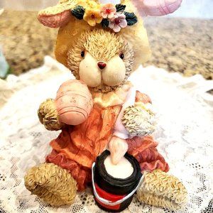 L@@K Set of 2 Cute Easter Bunny Rabbit Figurines, Momma, Baby & Child ~ Decor