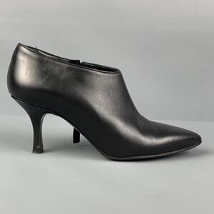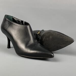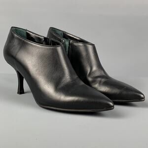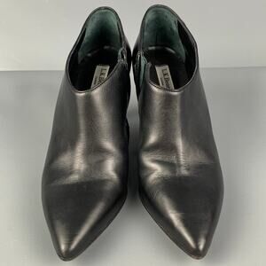L.K.BENNETT booties comes in a black leather featuring a pointed toe, kitten heel, and a side zipper closure. Made in Italy.