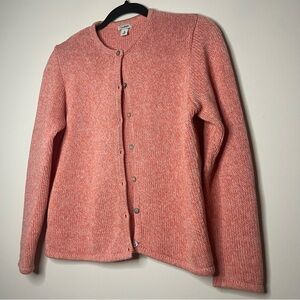LL BEAN 100% Cotton Knit Button Up Creamsicle Orange Sweater Cardigan