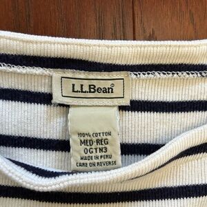 LL BEAN 3/4 SLEEVE BLUE CREAM STRIPE COTTON BOAT NECK SWEATER SZ M