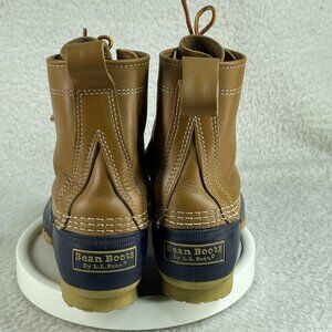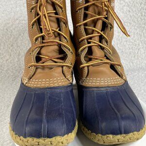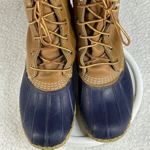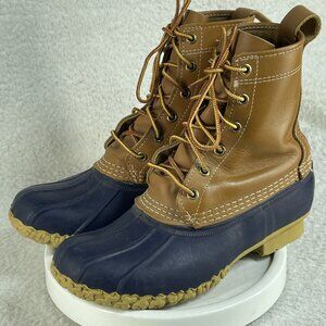 LL BEAN 8" Duck Boots Women’s Size 7M Tan Blue Leather Upper Made In Maine