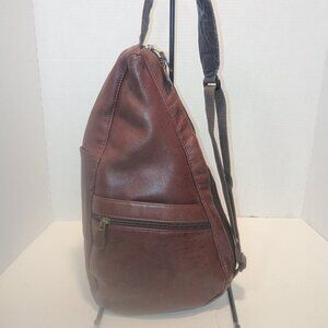 LL BEAN AMERIBAG Traveler Ergo Teardrop Sling Pack Brown Leather Medium 0XP83