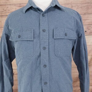 LL BEAN BLUE LONG SLEEVE THICK CHAMOIS CLOTH BUTTON DOWN SHIRT MENS XL REG WARM