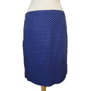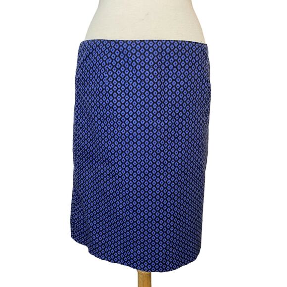 LL BEAN Blue Diamond Print Lined Favorite Fit Pencil Skirt 10 Reg Modest #286359