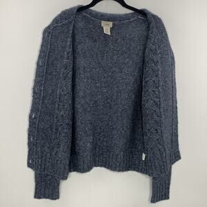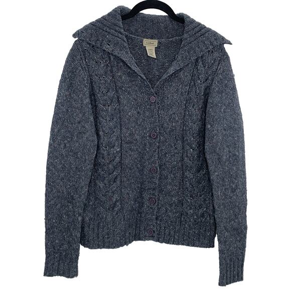 LL BEAN Cable Knit Cardigan Small Blue Wool Button Up Marled Sweater VTG EUC