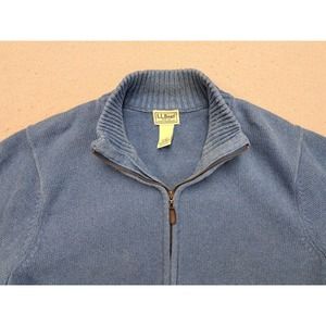 L.L. BEAN Cardigan Grandpa Sweater Men's XLarge Cotton Full Zip Rib Collar Blue
